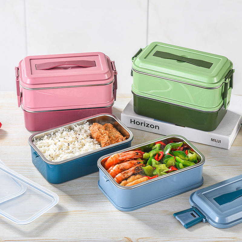 Contenedor de Alimentos de Doble Capa de Gran Capacidad, Diseño Nuevo, Lonchera de Acero Inoxidable con Asa de Silicona, Porta Alimentos Metálico