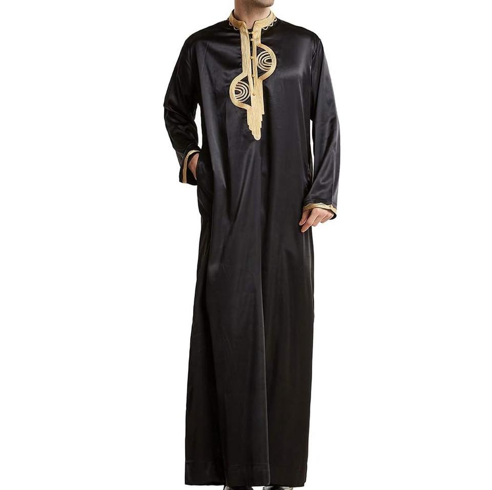 Nuevo Diseño de Túnica Larga Moderna con Estampado de Bordado y Serigrafía, Túnica Islámica Musulmana de Seda y Algodón para Ramadán, Thobes Jubba