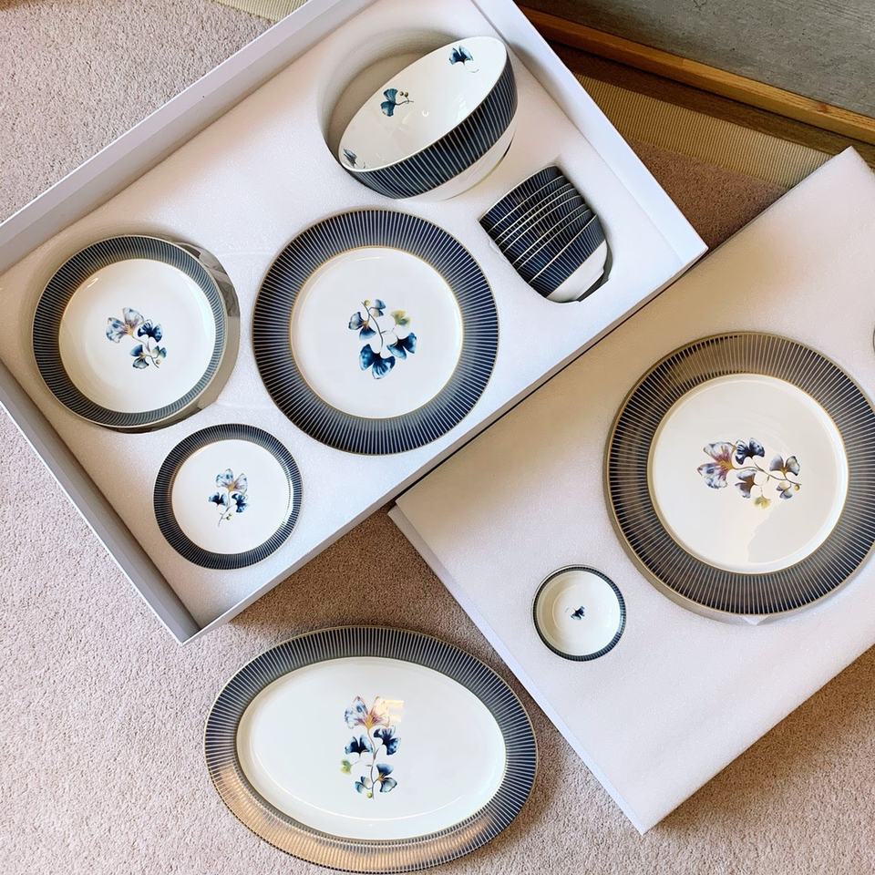 Nuevo Diseño Europeo, Juego de Vajilla de Porcelana Fina con Patrón de Ginkgo Azul
