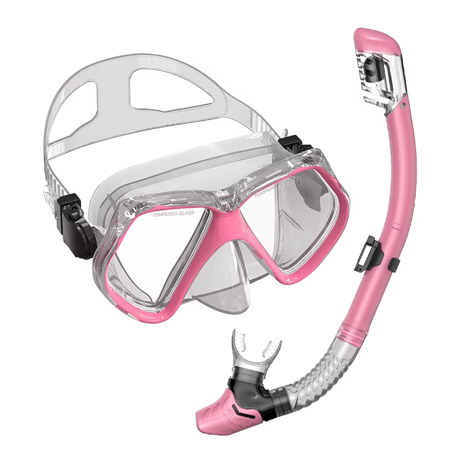 Nuevo diseño, precio de fábrica, conjunto de snorkel, máscara de buceo de silicona, nuevo conjunto de máscara de buceo con marco grande de vidrio templado
