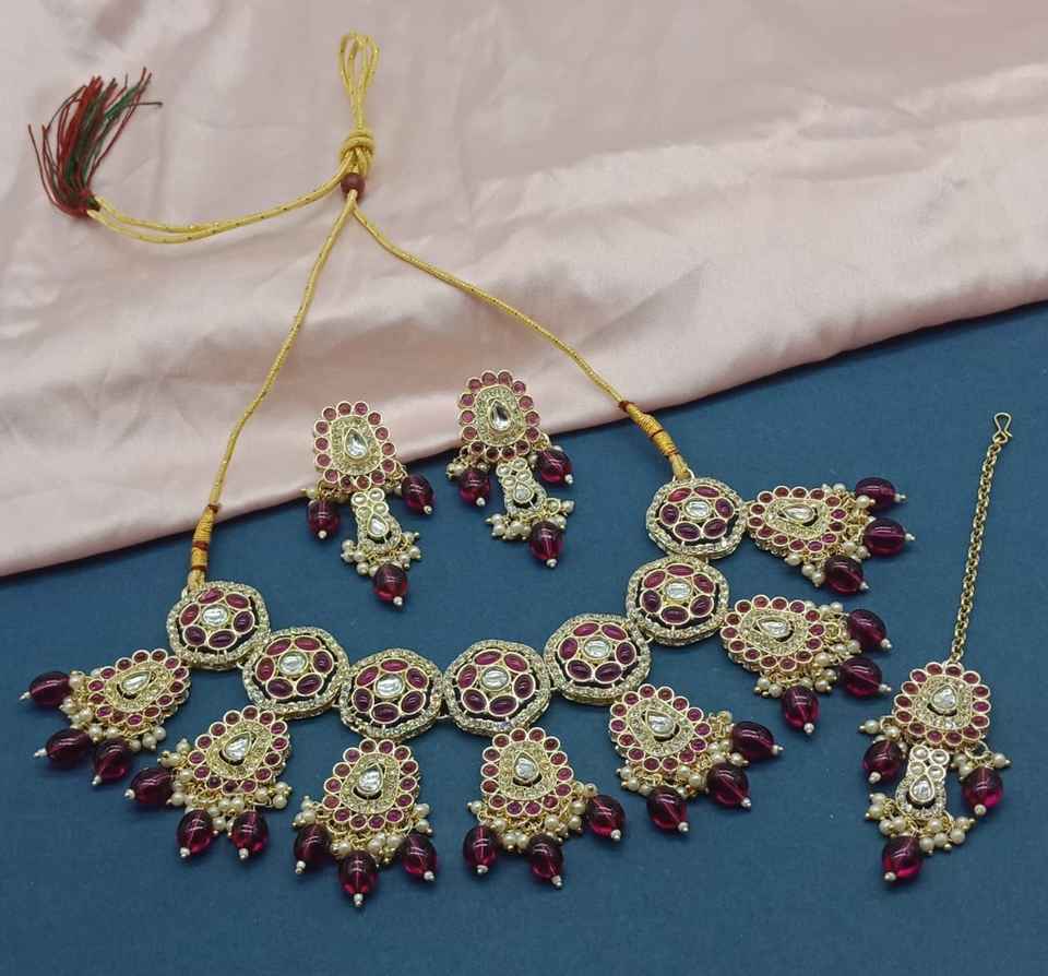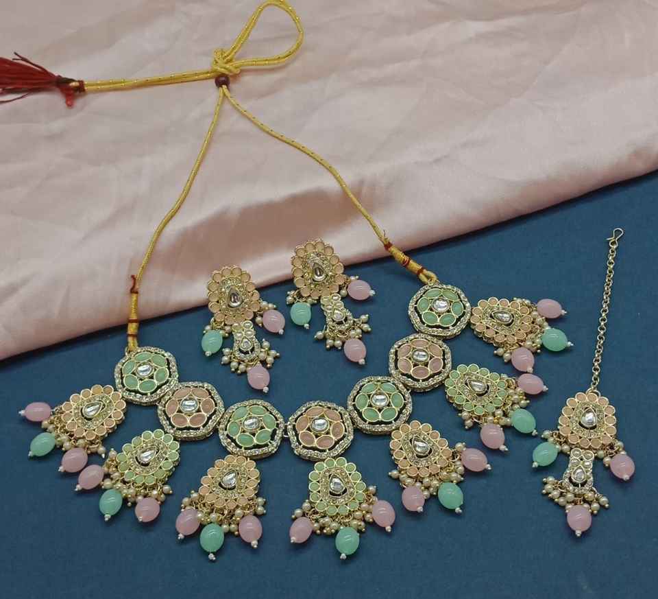 Type:Green Pearl & Kundan Studded Necklace Jewellery Set