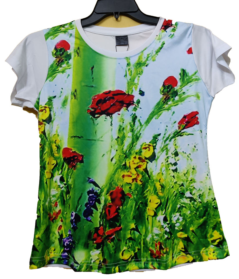 Camiseta con cuello redondo estampada de manga corta a la moda de alta calidad, nuevo diseño para damas, verano, informal, orientada a la exportación, Bangladesh