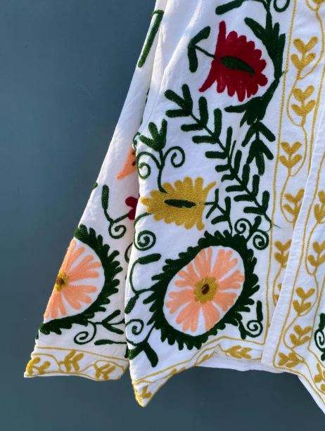 Chaqueta de Terciopelo con Bordado Suzani Blanco, Diseño Nuevo y Moderno, Estilo Vintage Boho, Chaqueta Unisex de Invierno, Prenda Exterior Étnica y Chic