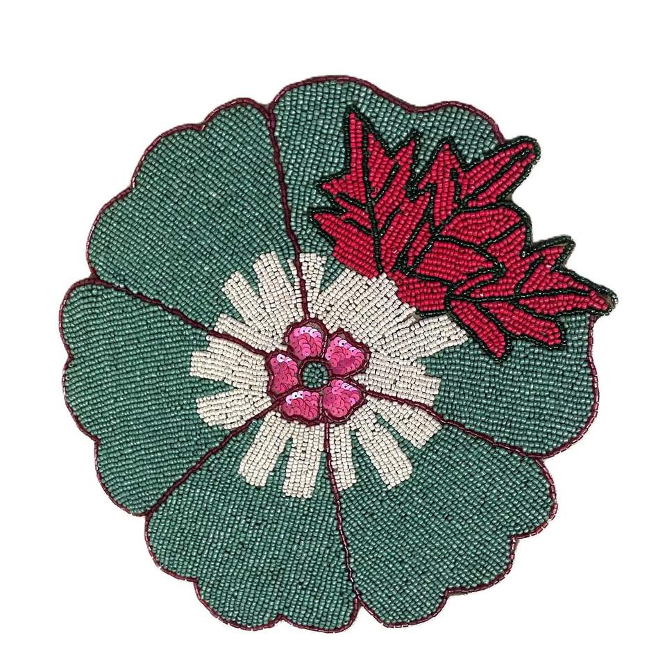 Manteles individuales de cuentas de vidrio bordadas multicolor con forma de flor de nuevo diseño, venta directa de fábrica