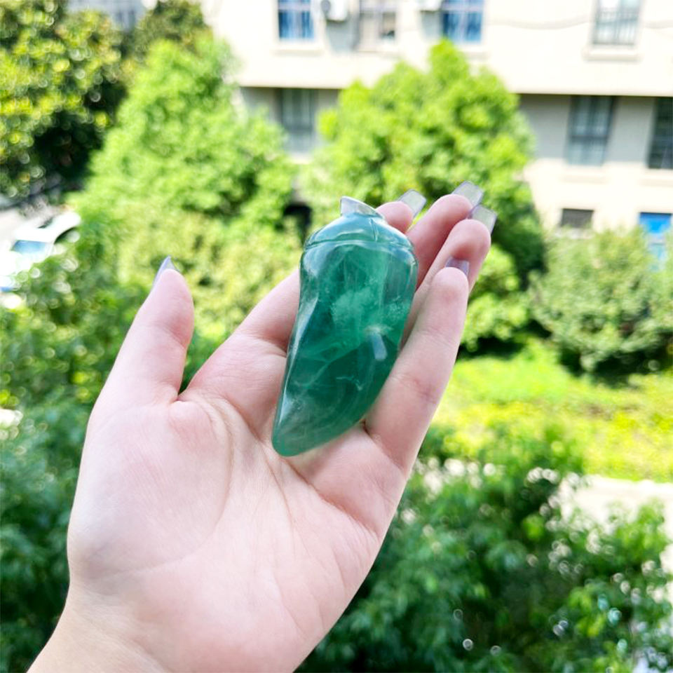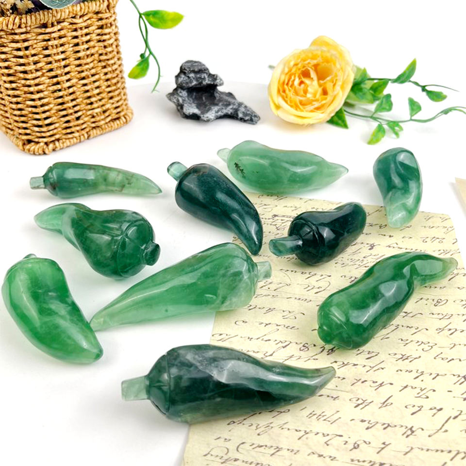 Nuevo diseño de artesanía de tallado de fluorita con gran precio, pimienta de cristal de fluorita verde tallada a máquina para decoración del hogar