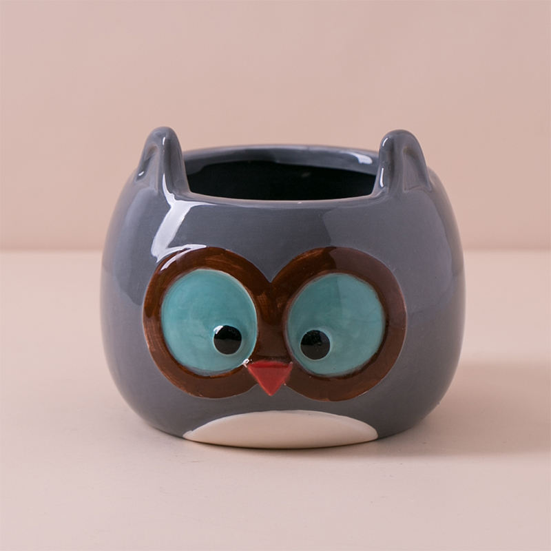 Macetas y jardineras decorativas de cerámica para jardín, diseño de búho pequeño de dibujos animados, suculentas