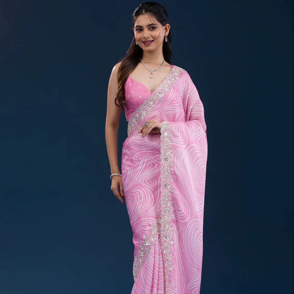 Nuevo Diseño Georgette con Estampados Digitales y Bordados con Lentejuelas