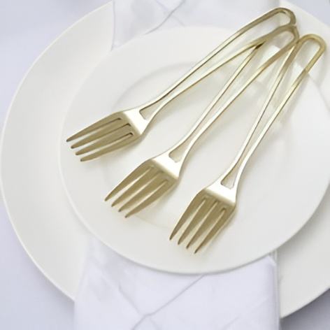Tenedores de Metal chapados en oro de nuevo diseño con asas de diseñador, temas personalizados para fiestas, cafeterías