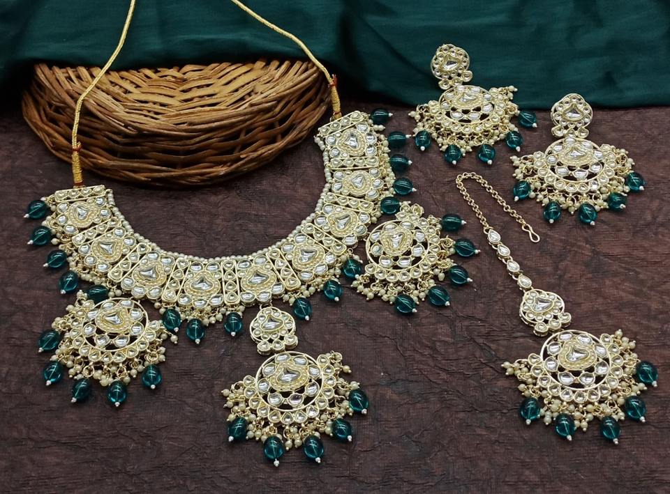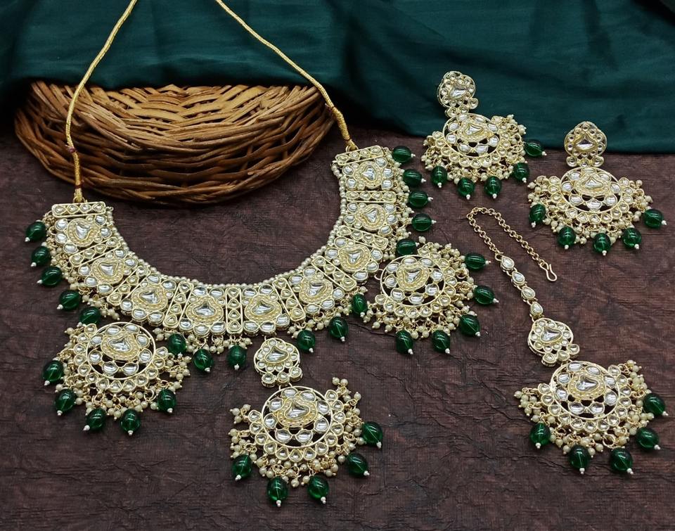 Tipo::Green Pearl & Kundan tachonado collar conjunto de joyas