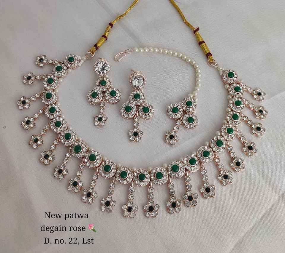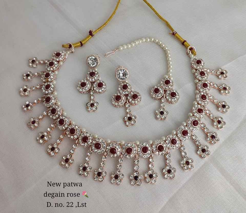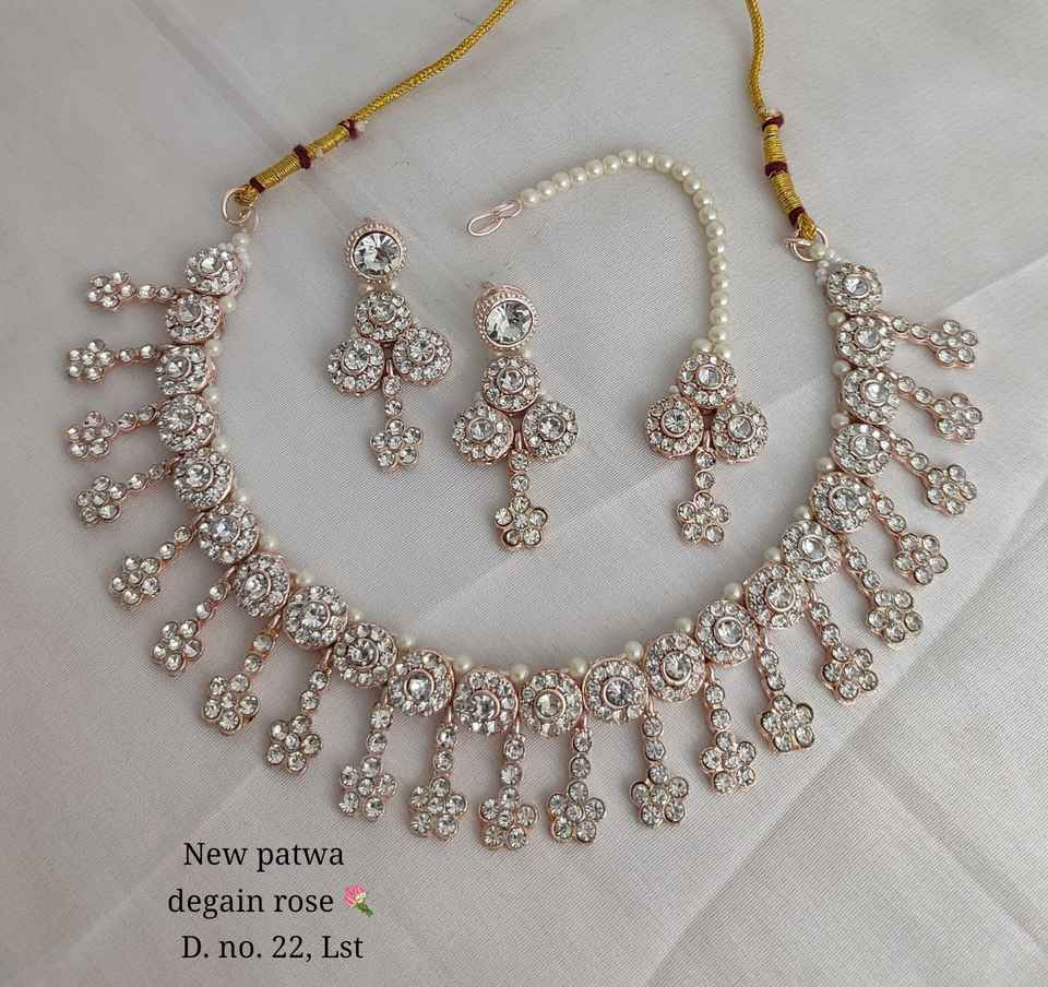 Nuevo diseño chapado en oro tradicional gota perla y piedra tachonado pendiente Mangtika gargantilla collar conjunto y conjunto de joyería para mujer
