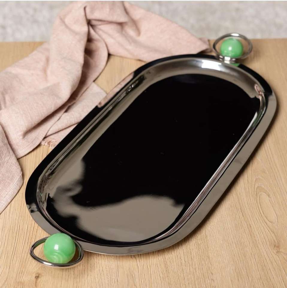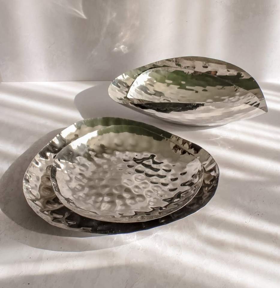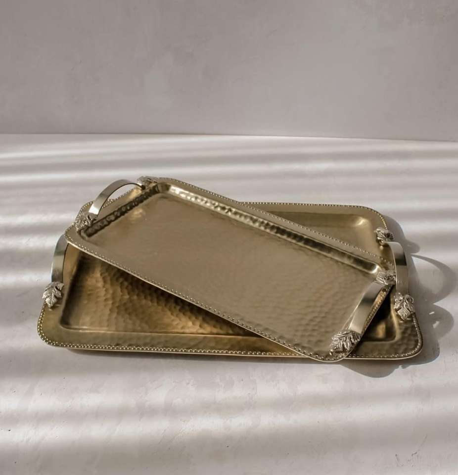 Bandeja rectangular dorada de nuevo diseño con mango de metal plateado con tazón para servir chocolate martillado a precio mayorista