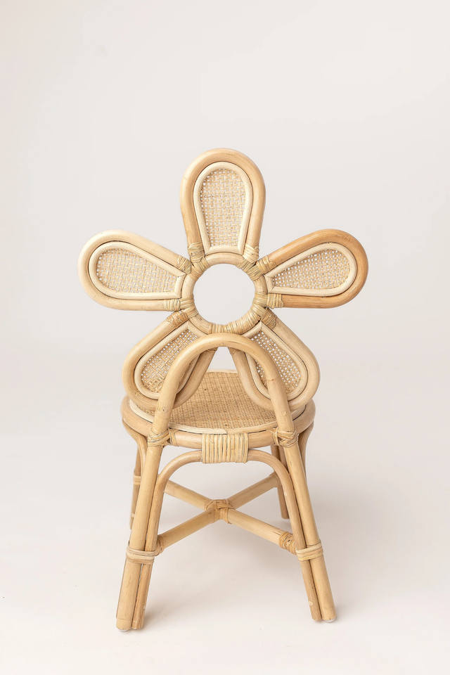 Silla Infantil de Ratán Hecha a Mano con Respaldo Floral, Diseño Nuevo, Silla de Ratán Sostenible Hecha a Mano, Artículo Perfecto para su Hijo