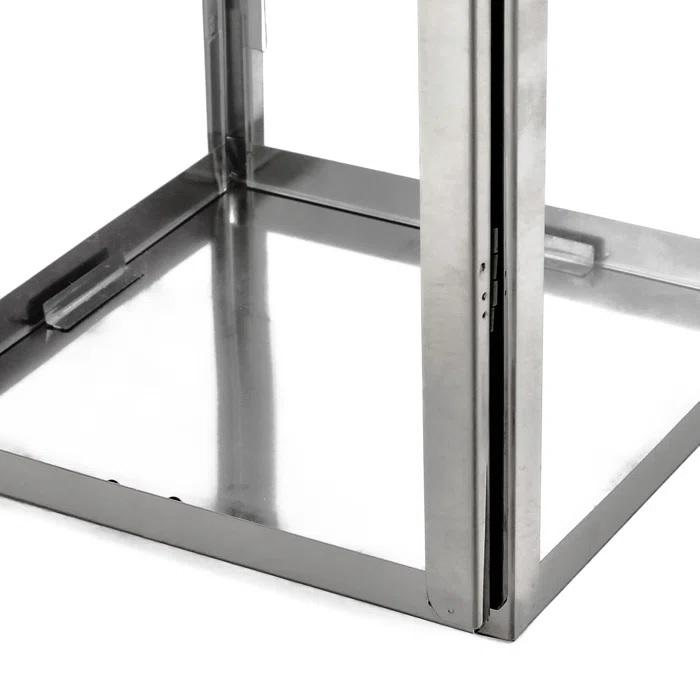 Elegante farol de acero inoxidable con paneles de vidrio transparente, candelabro moderno, ideal para decoración del hogar, patio e iluminación festiva