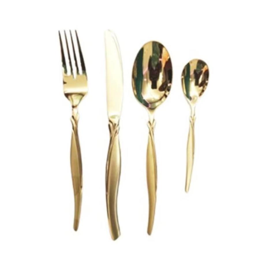 Cubiertos de acero inoxidable con acabado Chapado en Color dorado y mango de nuevo diseño, cubiertos aptos para lavavajillas para uso en fiestas en casa, Juego de 4