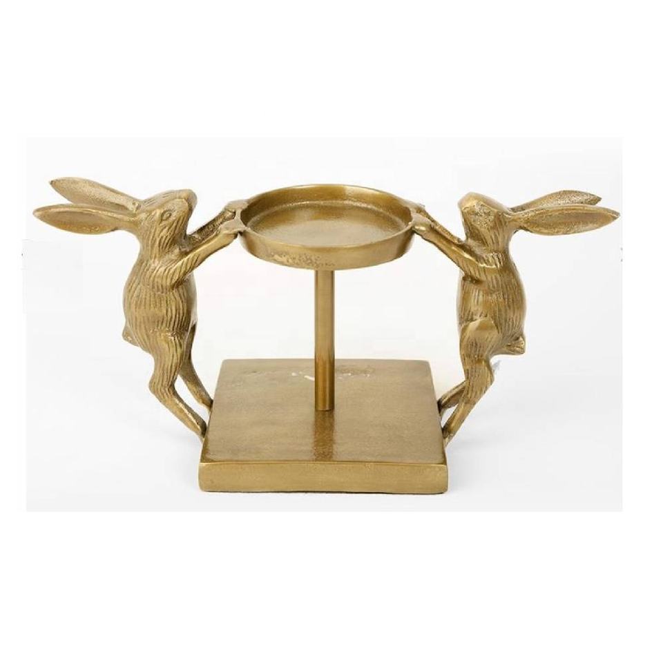Portavelas de Pilar con Diseño de Conejo, Portavelas Decorativo de Aluminio con Acabado Dorado para Centros de Mesa, Decoración de Bodas