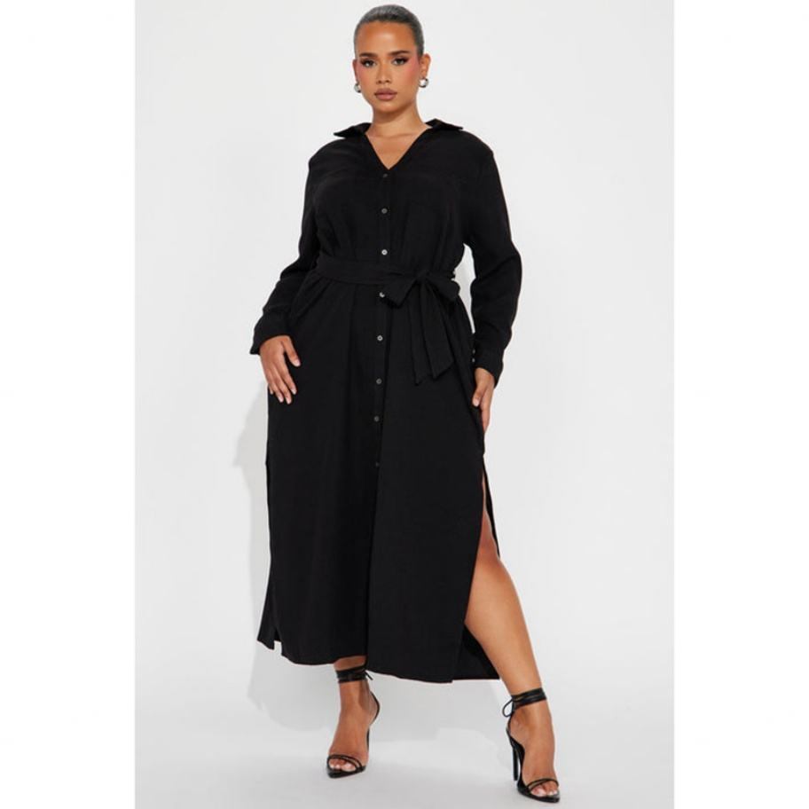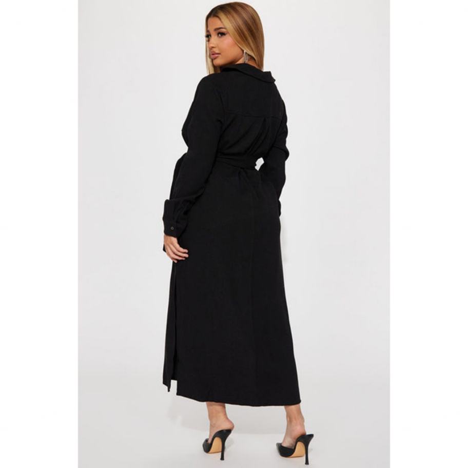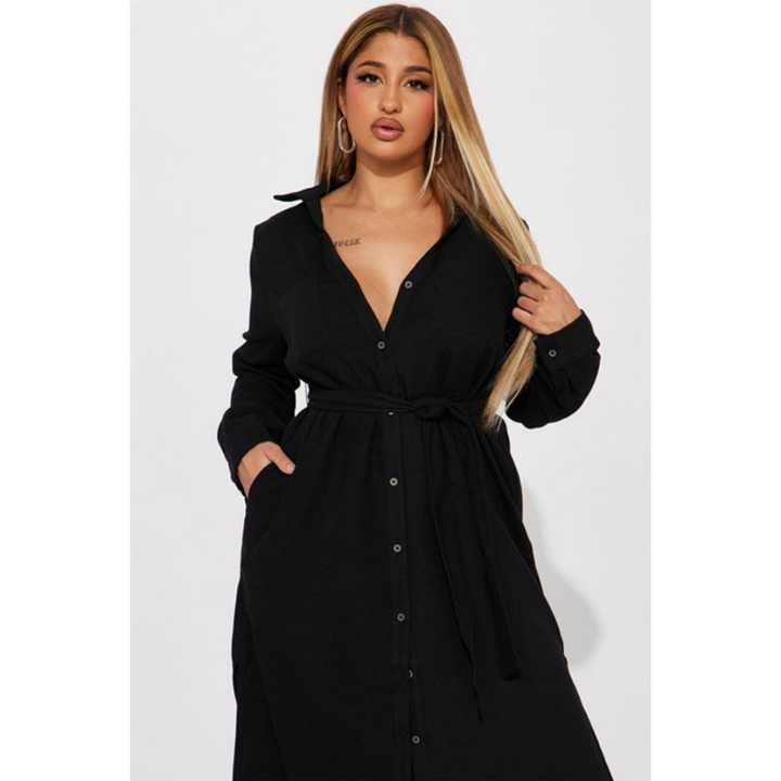 Nuevo Diseño Vestido Casual de Mujer de Alta Calidad con Botones al Frente, Cintura Ajustable, Aberturas Laterales Altas, Sin Elasticidad y Mangas Largas