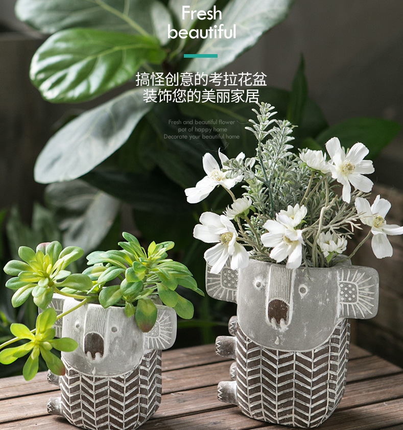 Maceta de cemento con forma de León y koala para suculentas, maceta de cemento con forma de animal, barata, de alta calidad, nuevo diseño