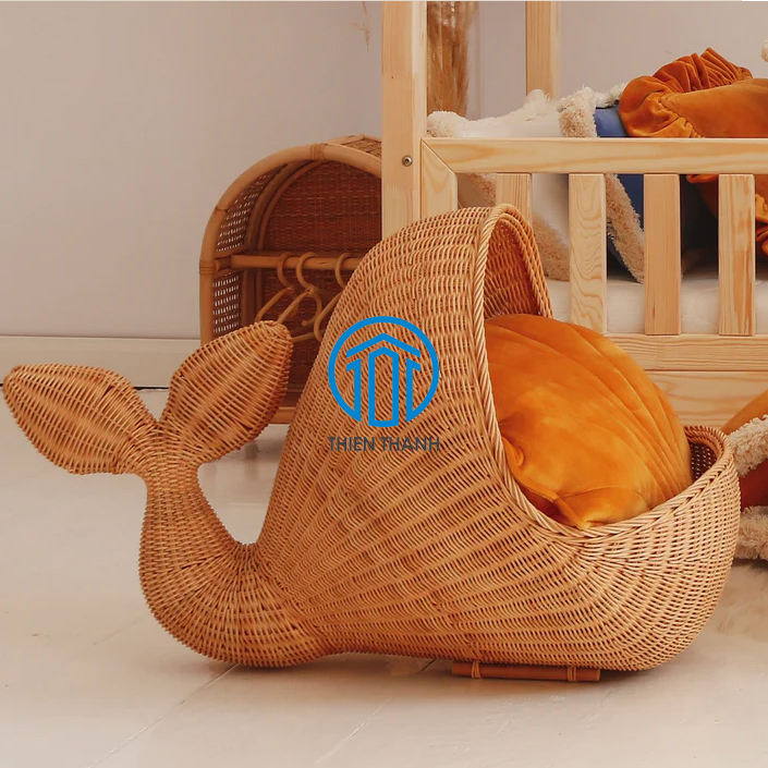 Cestas de ballena de ratán de alta calidad de nuevo diseño, cestas de almacenamiento para niños, almacenamiento de juguetes para niños con forma de Animal de ratán Natural