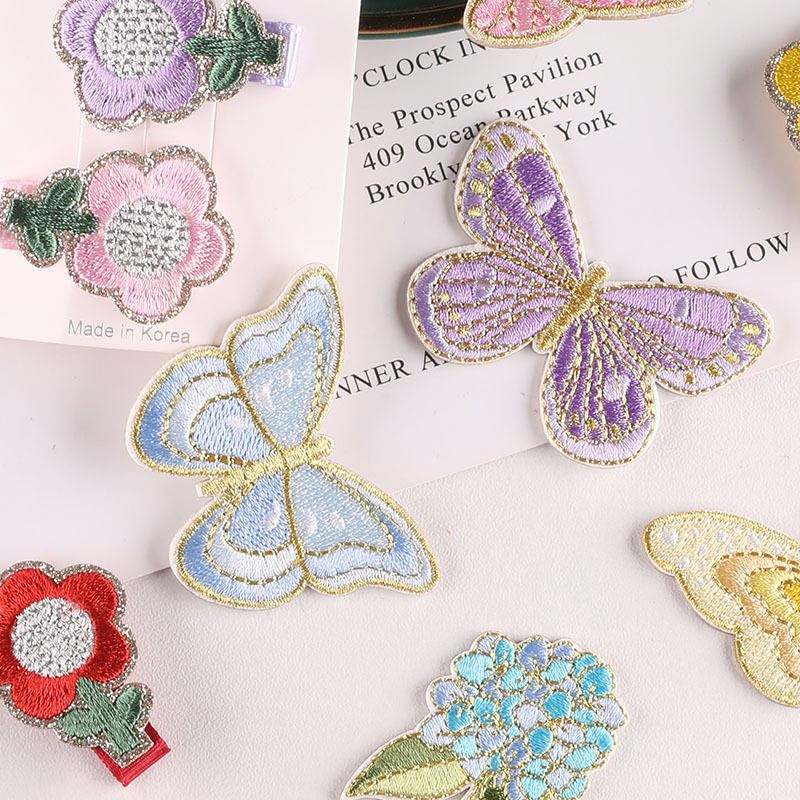 New Design High Quality Self Adhesive Artistic Embroidery Gold Glitter Edge butterfly Flower Patch for Decoration