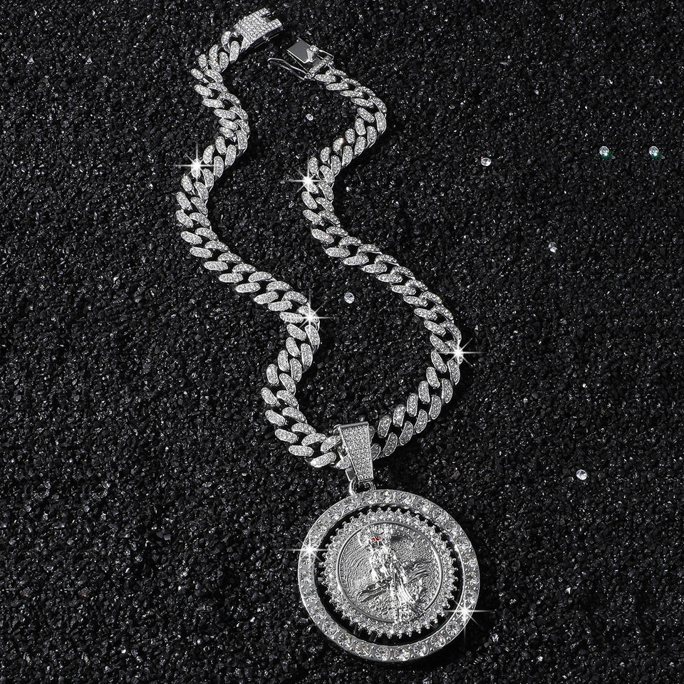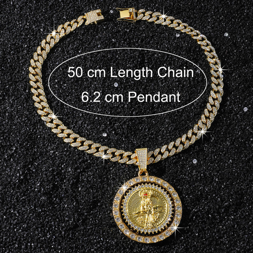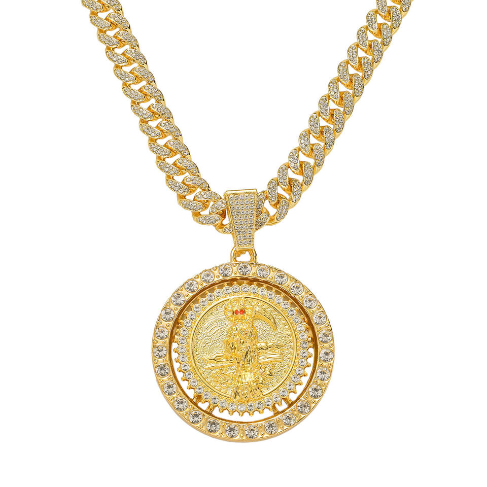 Nuevo Diseño, Estilo Hiphop, Collar con Colgante de Calavera Giratorio con Pedrería, Cadena Cubana, Collar para Hombre, Joyería de Moda