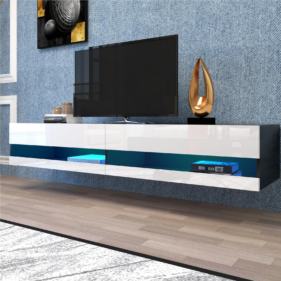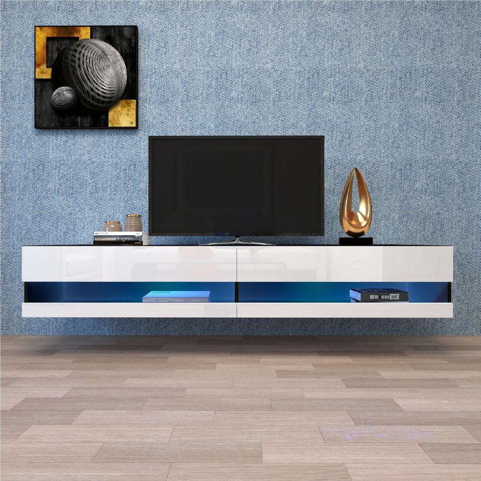 Nuevo diseño, unidad de pared de entretenimiento para el hogar, soporte de TV con estantes flotantes LED de 20 colores, gabinete de TV montado en la pared