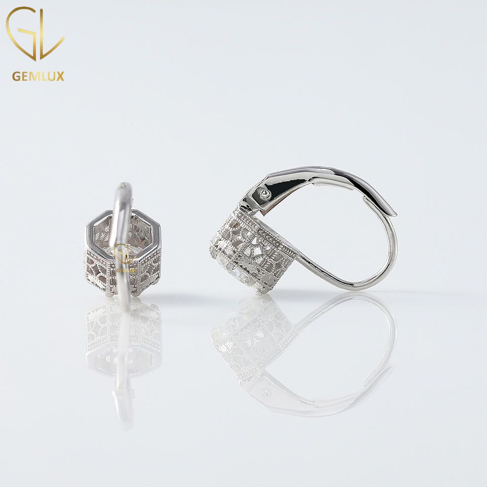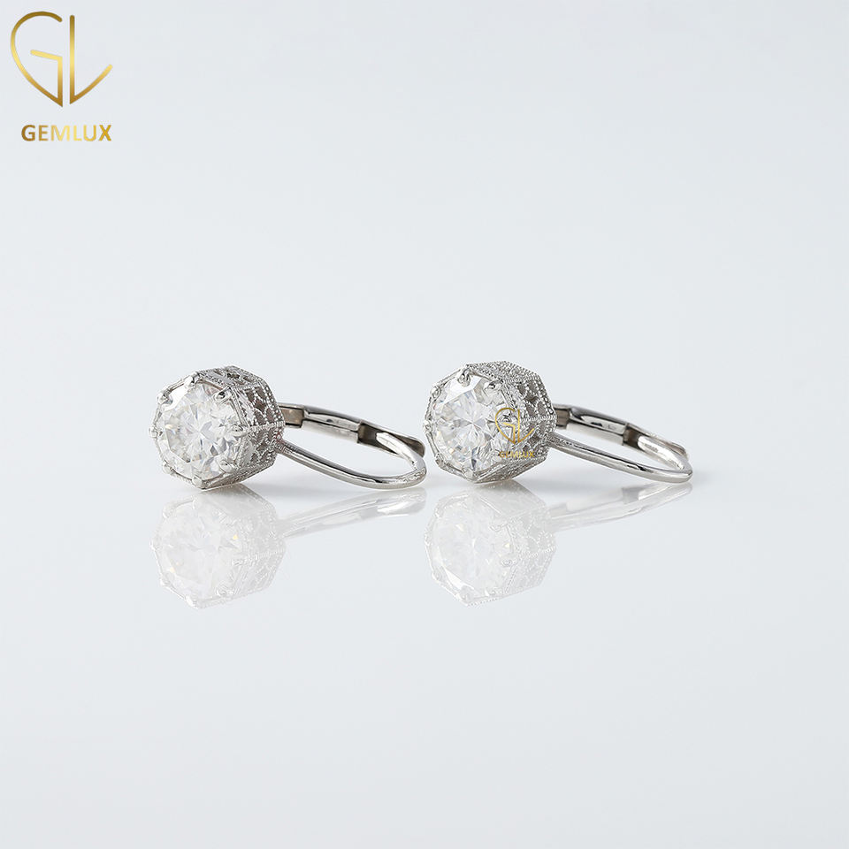 Nuevo diseño Venta caliente palanca trasera 14K oro Art Deco corte redondo Moissanite diamante Milgrain con pendientes de diseño de filigrana