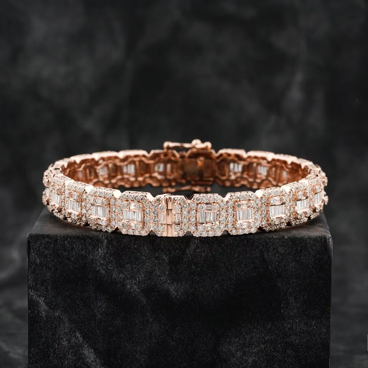 Nuevo diseño Iced Out Lab Grown Moissanite Pulsera de cadena de eslabones cubanos Diamante VVS de dos filas con oro de 14K para regalo de la India