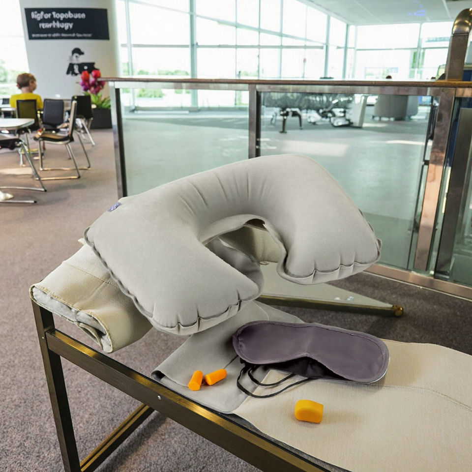 Almohada inflable de nuevo diseño, Kits de viaje para dormir, Kit de viaje personalizado para aerolíneas, incluye máscara para los ojos, tapón para los oídos, juego de comodidad de viaje