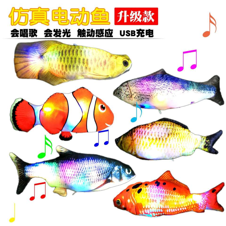Juguetes interactivos de varios estilos para gatos, juguetes de peces de felpa para saltar con carga USB