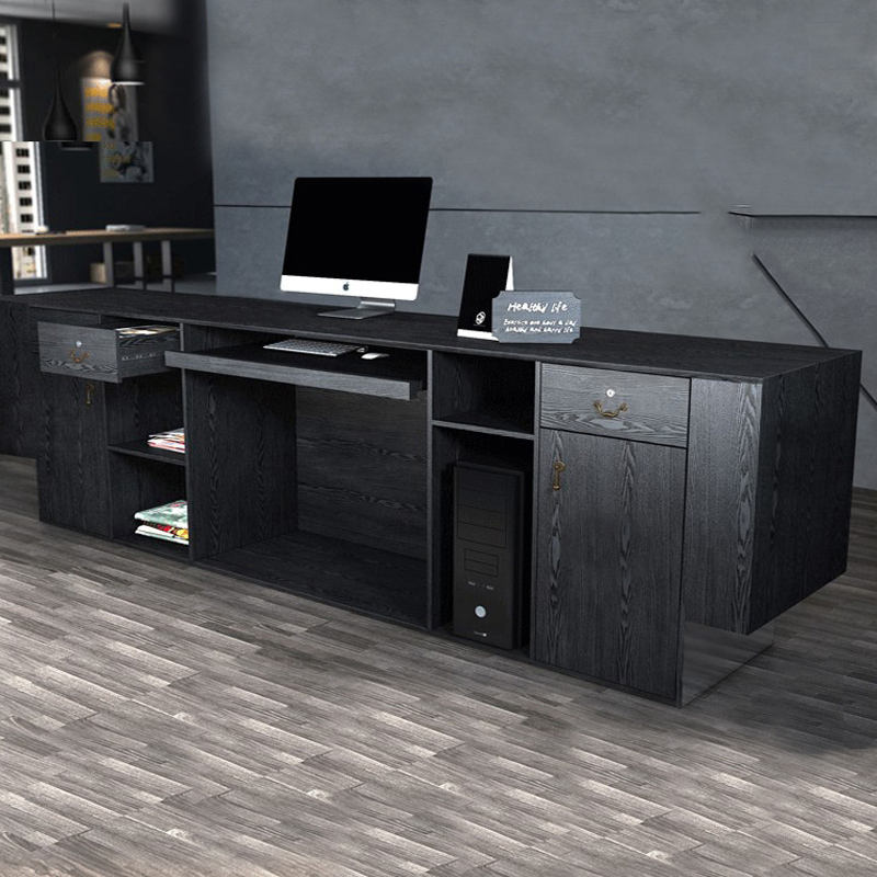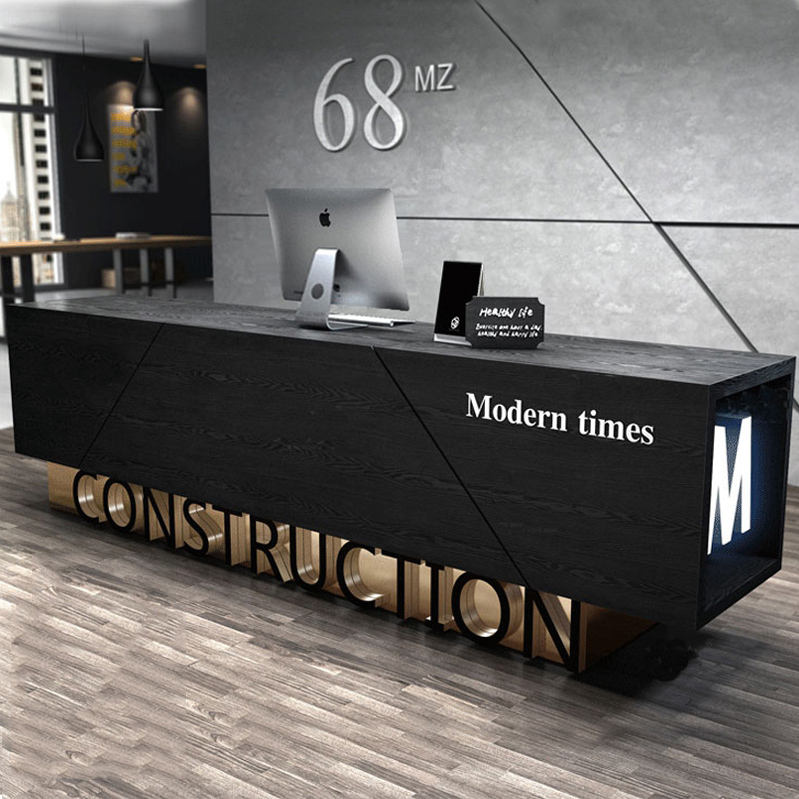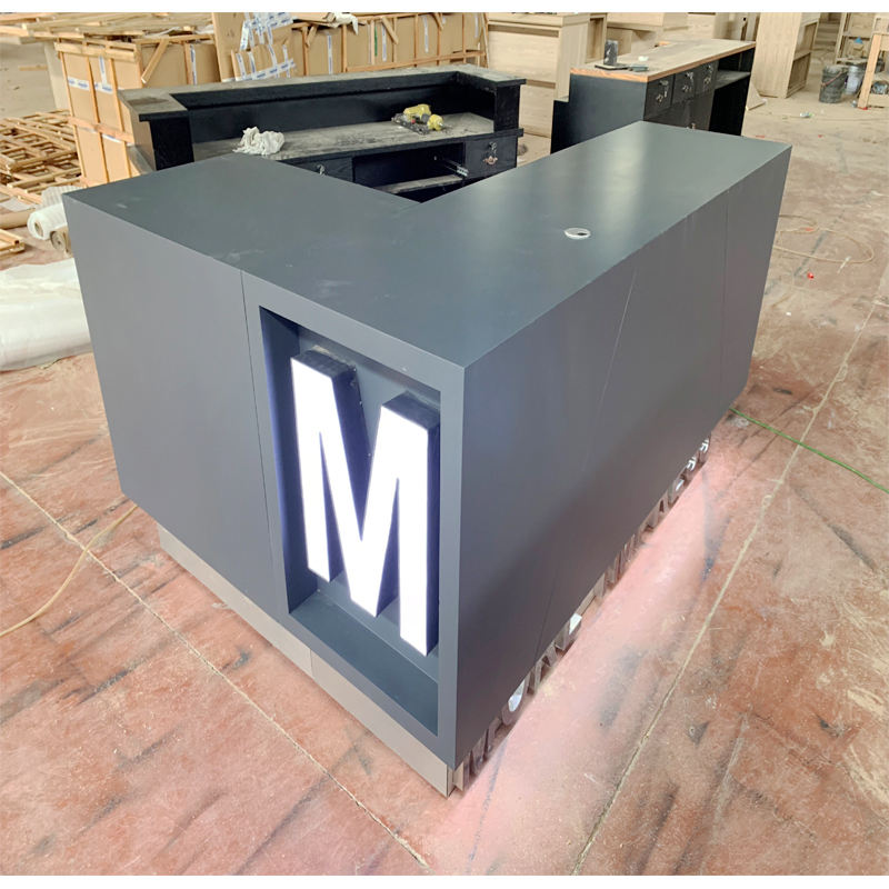 Escritorio de recepción negro tipo L de nuevo diseño, pasillo moderno, cajero en la recepción para club nocturno
