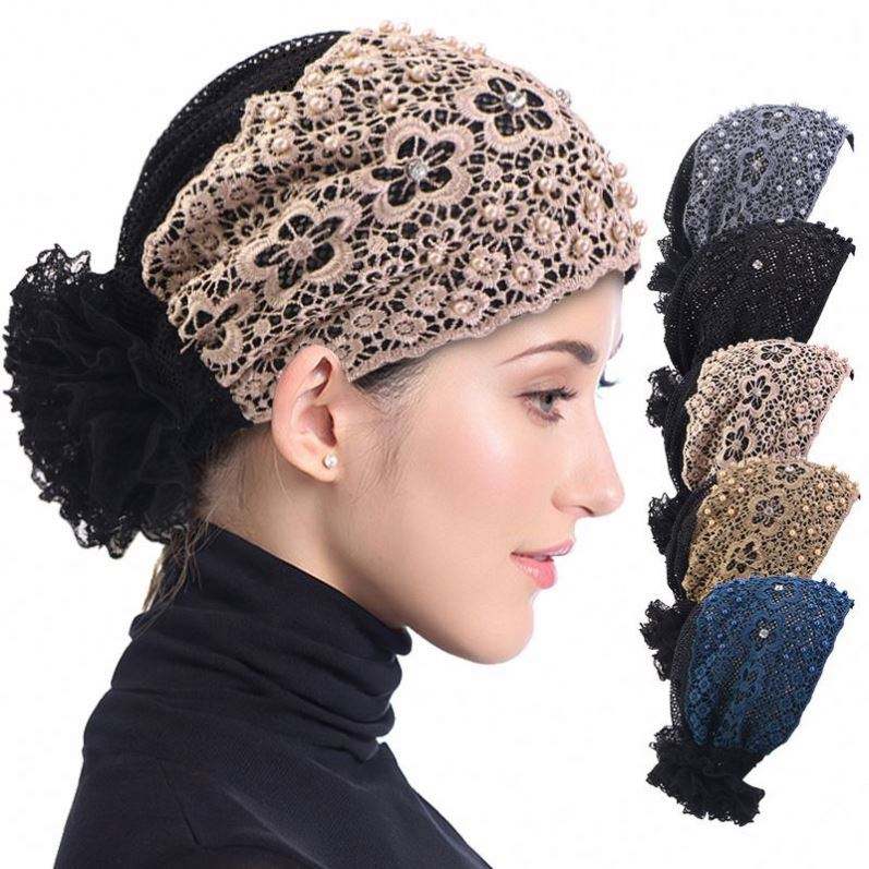 Nuevo Diseño de Turbante Musulmán con Encaje y Flores para Mujer, Hijab Transpirable con Pedrería, Accesorios Multifuncionales para Exteriores