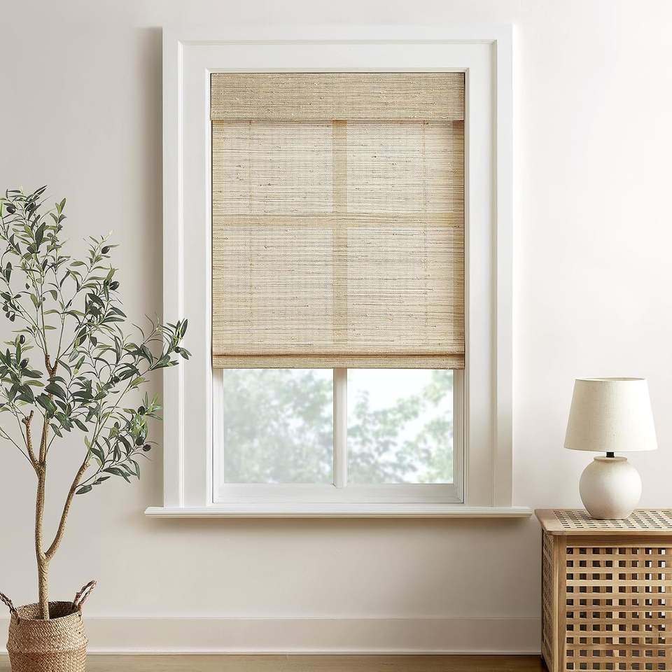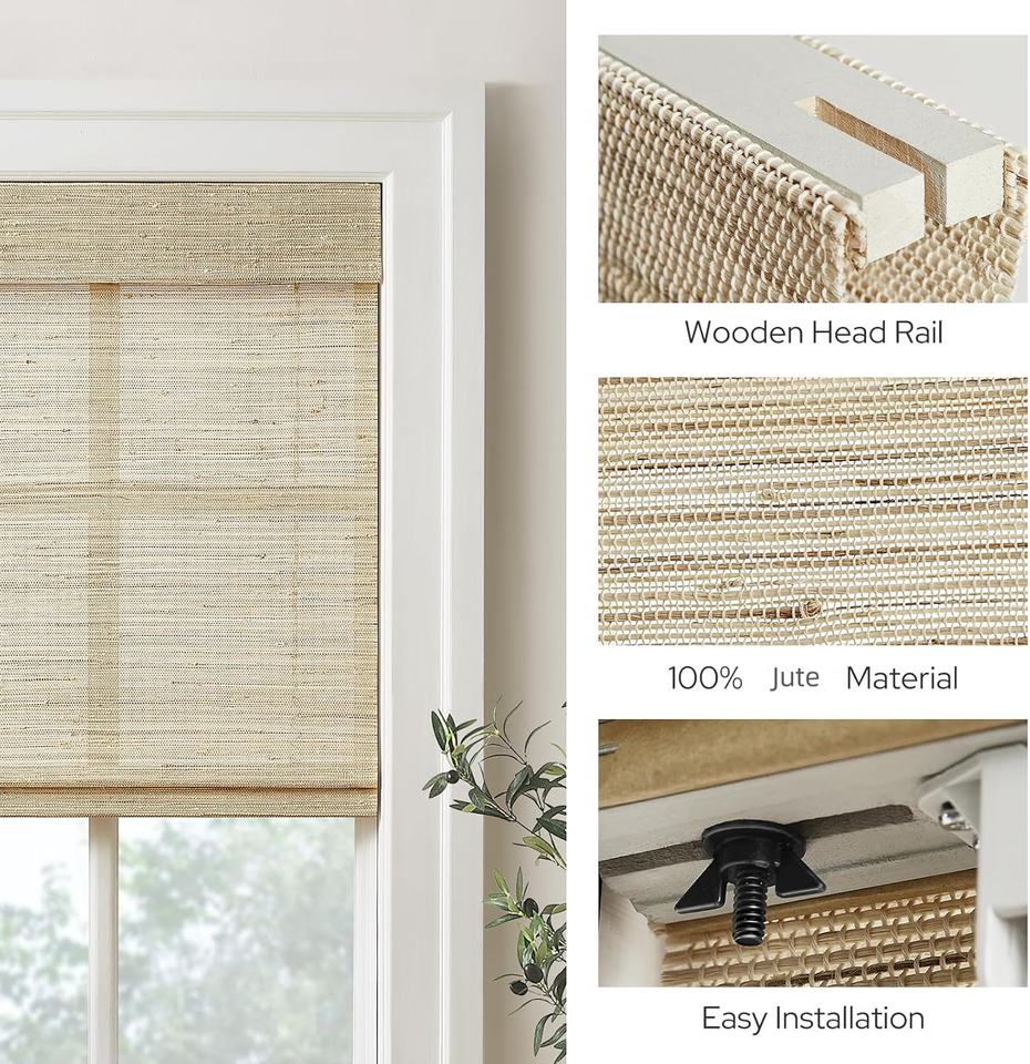 Persianas Romanas de Yute con Resorte, Diseño Nuevo, Filtrado de Luz Natural, Estilo Veneciano, para Interiores y Exteriores, Manuales, sin Cable, para Ventanas