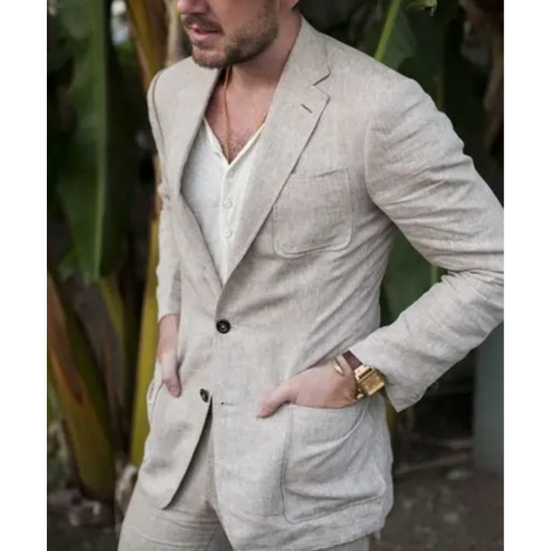 Nuevo Diseño de Trajes de Lino para Hombre de Verano, Estilo Casual, Trajes de 2 Piezas (chaqueta+pantalón), Solapa con Muescas, Bolsillo de Parche, Blazer para Hombre, Esmoquin ZYL069