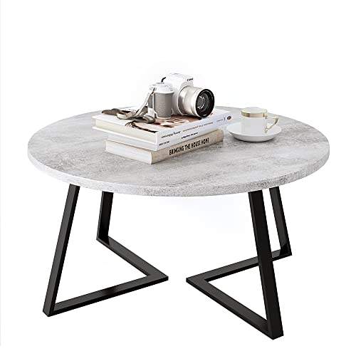Mesa de centro redonda de 2 niveles, tapa de cristal templado y tapa de mármol, marco antiguo de latón, centro moderno/mesa de centro