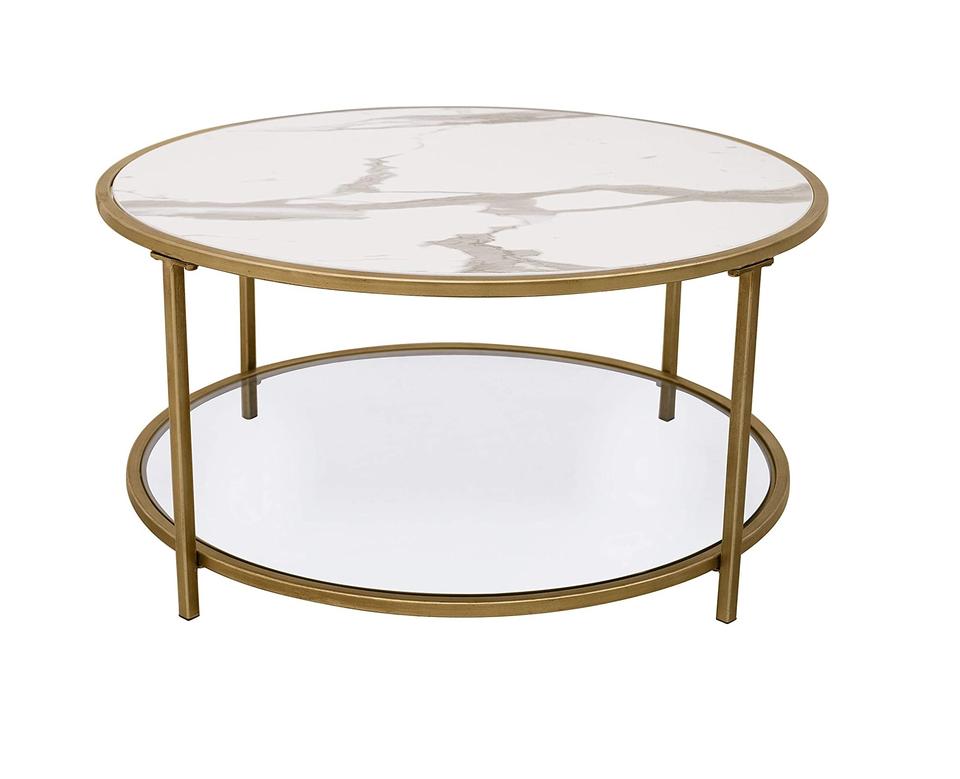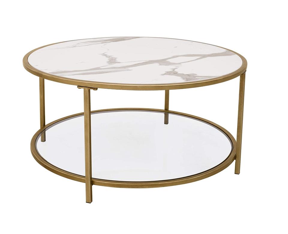 2 Tier Round Glass & Marble Coffee Table