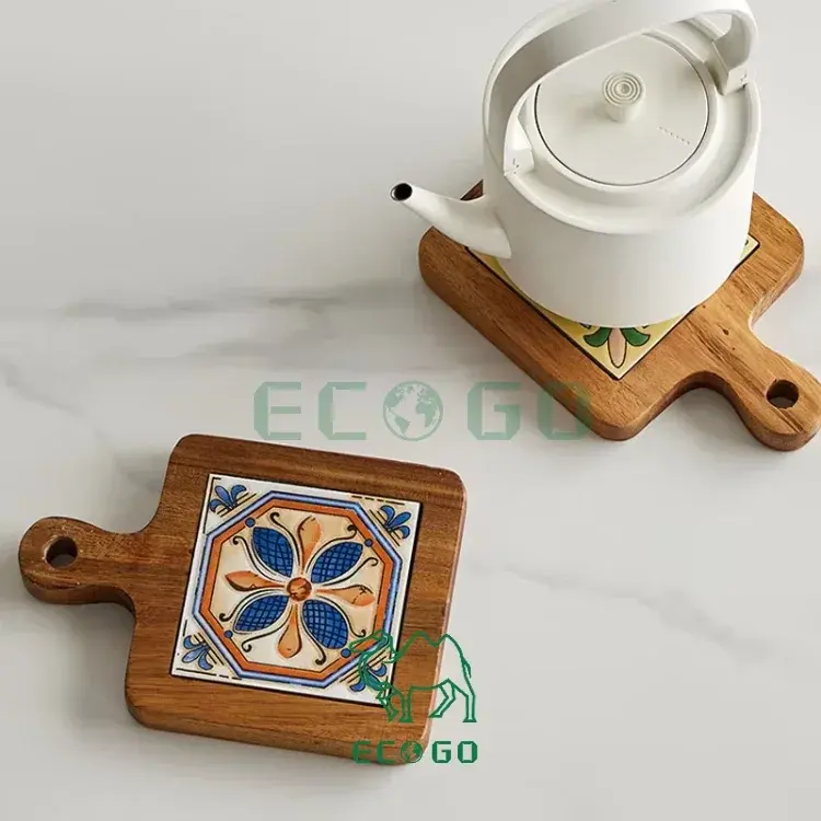 Posavasos de lujo de nuevo diseño, superventas, posavasos de madera Vintage, salvamanteles de madera resistente al calor, alfombrilla para vajilla con asa