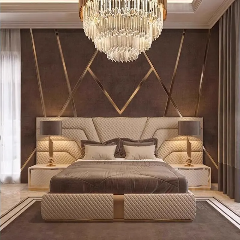 Nombre del producto:Cama de Dormitorio de Cuero de Lujo Moderno