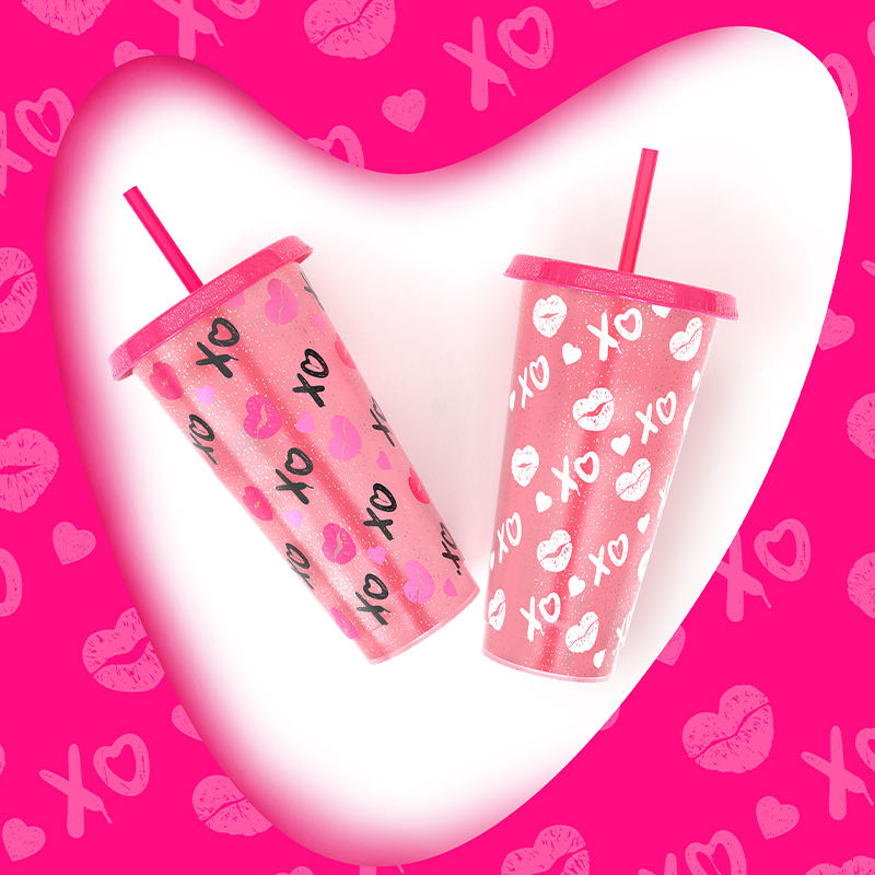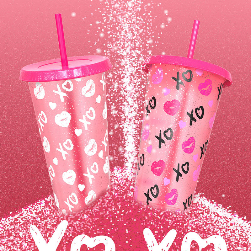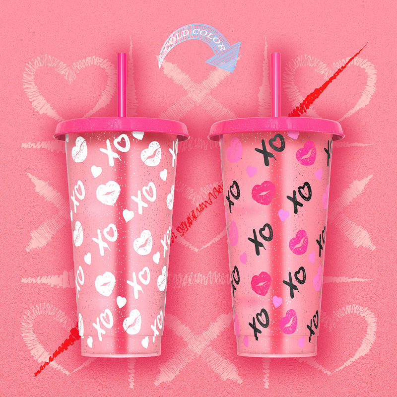 Nuevo diseño mágico regalo del Día de San Valentín brillo café frío vaso de plástico taza que cambia de color