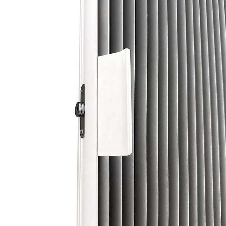 Nuevo diseño de persianas para puertas correderas de control manual, tela de panal opaca para ventanas grandes y puertas abiertas de izquierda a derecha