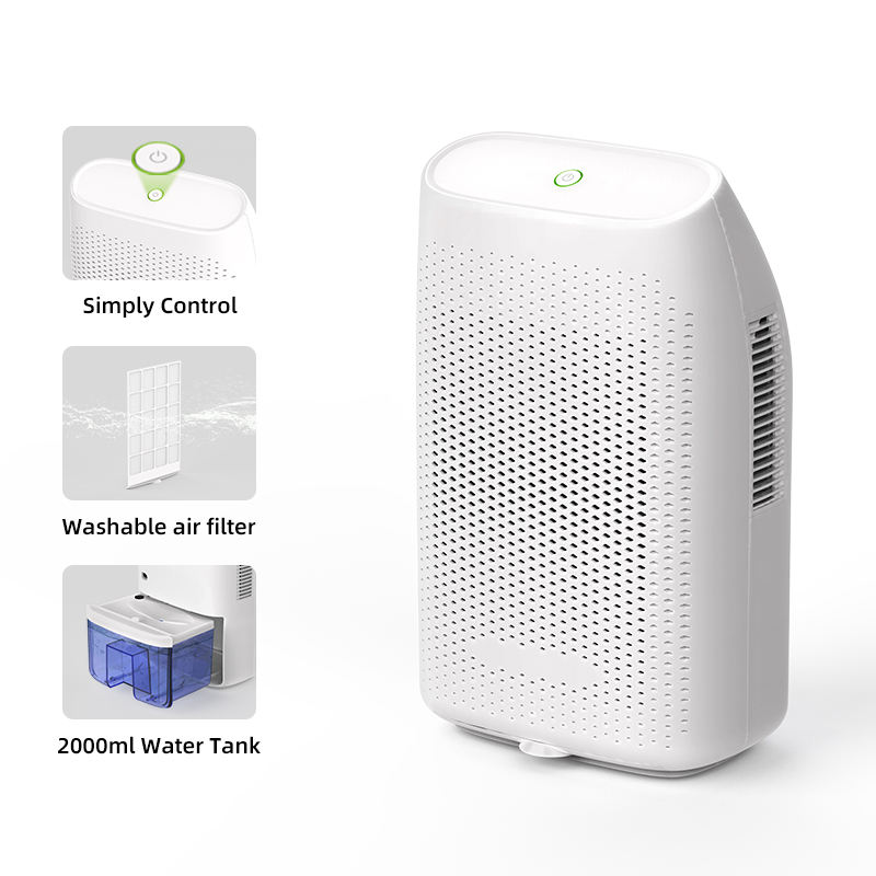 Nuevo diseño Fabricación Filtro lavable 2L Deshumidificador portátil para el hogar con puntas completas de agua