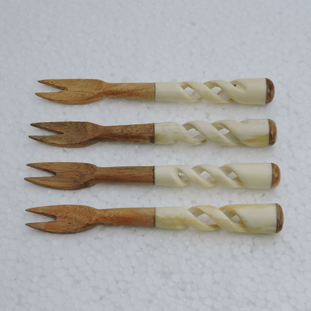 Tenedor de piedra y madera de mármol de nuevo diseño, 4 piezas, productos ecológicos sostenibles, juego de cubiertos de acero inoxidable de alta calidad