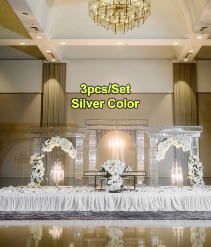 Nuevo Diseño de Arco de Boda en Acrílico y Plástico Color Oro Mate y Plata Pulida para Decoración de Escenarios de Boda