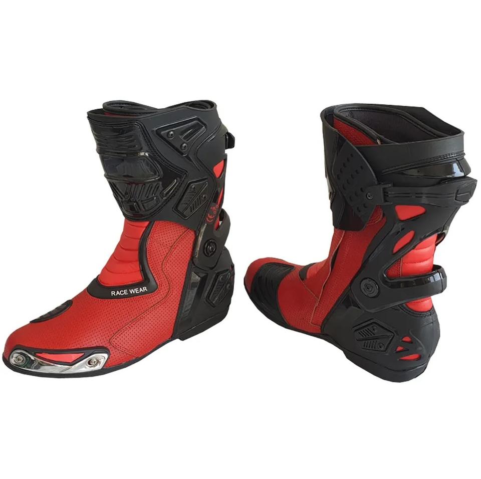 Nuevo diseño de botas de cuero de carreras de motociclista para hombre, botas de carreras de motos con tela de cuero personalizable, zapatos de moto hechos
