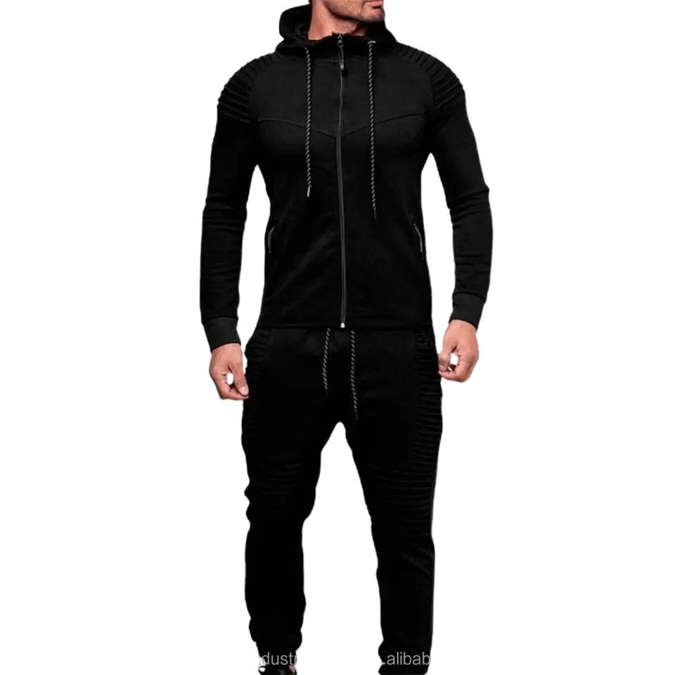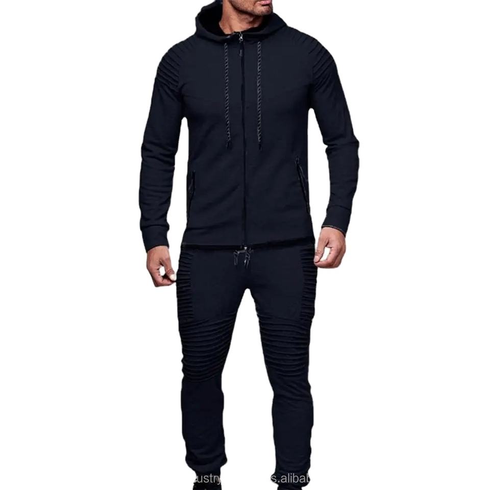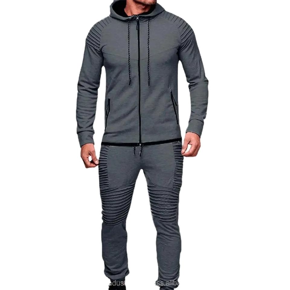 Nuevo Diseño, Conjunto Deportivo Casual de 2 Piezas para Hombre, Sudadera con Capucha y Pantalones Largos con Bolsillos con Cremallera y Cordón, Técnica Lavada, OEM Disponible