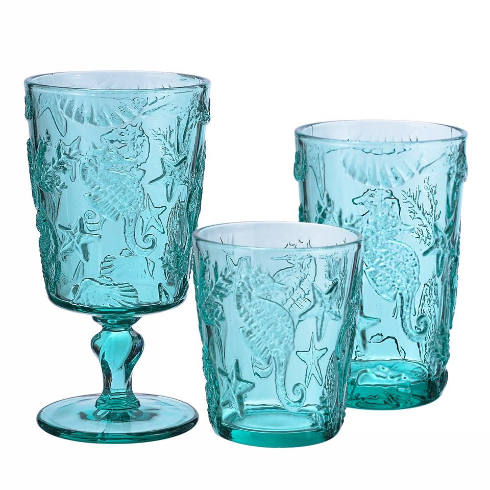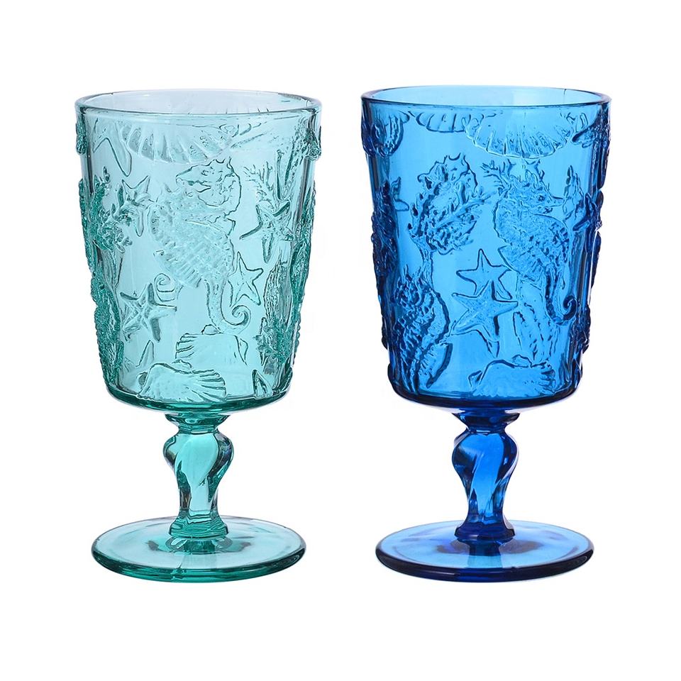 Vaso de Agua de Diseño Nuevo Estilo Océano con Relieve de Caballito de Mar, Color Original, Copa para Vino