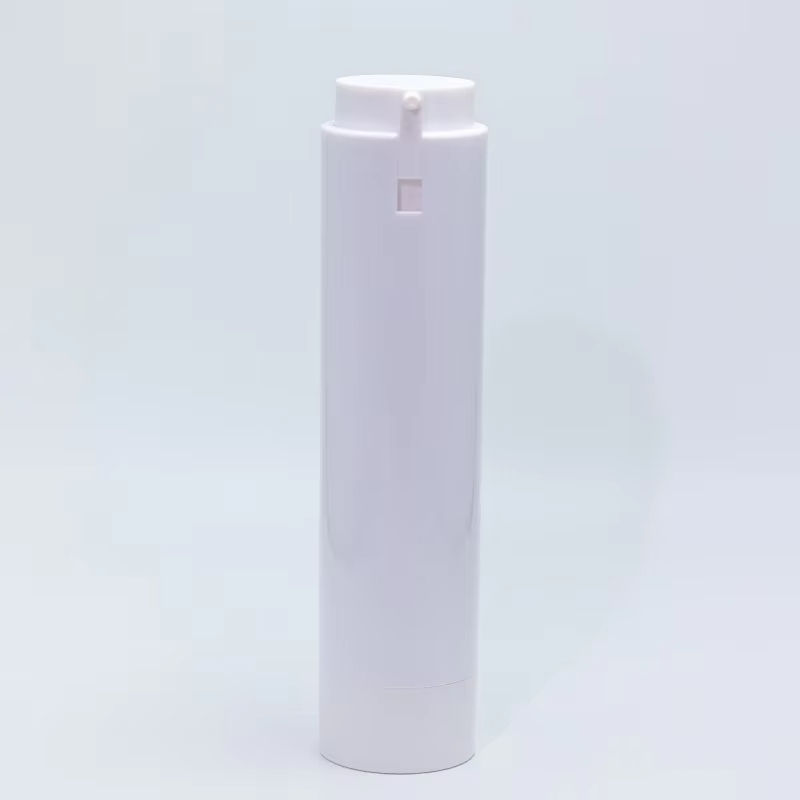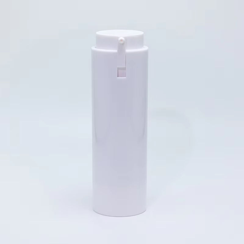 Nuevo Diseño de Botella de Plástico Negra de 50 ml con Bomba Dosificadora sin Aire Reemplazable, Forma Cilíndrica con Serigrafía para Cosméticos y Cremas Faciales