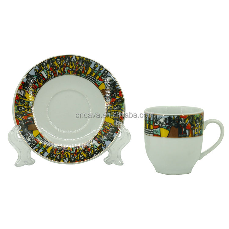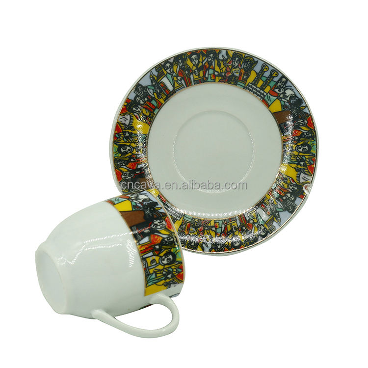 Juego de tazas de café y platillos de porcelana con diseño de arte tradicional etíope, venta directa de fábrica, nuevo diseño