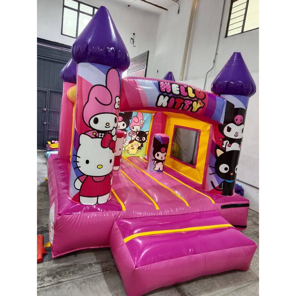 Castillo Inflable con Tobogán, Diseño Nuevo, Alquiler para Fiestas, Gato de Dibujos Animados, Castillo Hinchable Rosa, Combo de Castillo Inflable para Niños