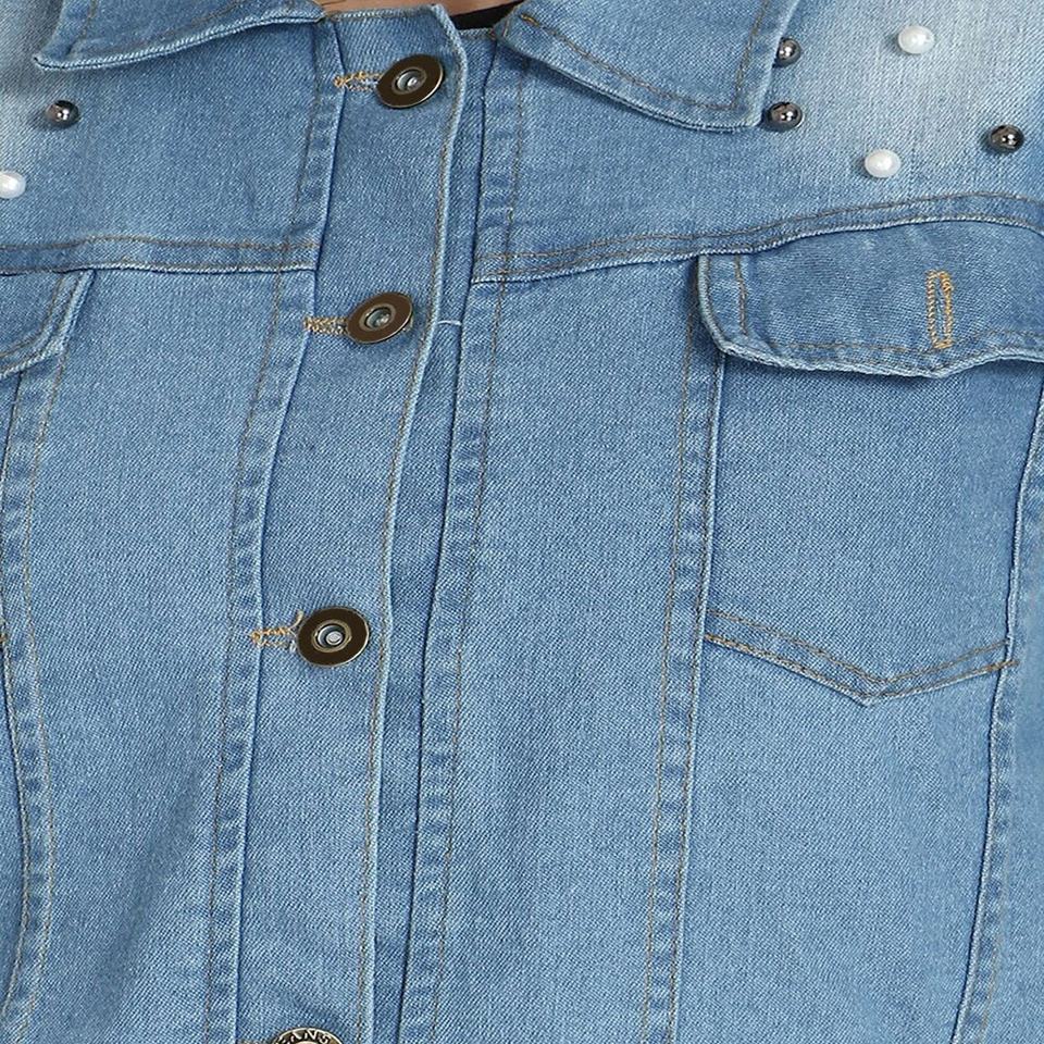 Nuevo diseño rosa Color impresión clavo cuenta moda suelta alta calidad chaqueta de mezclilla rasgada para las mujeres
