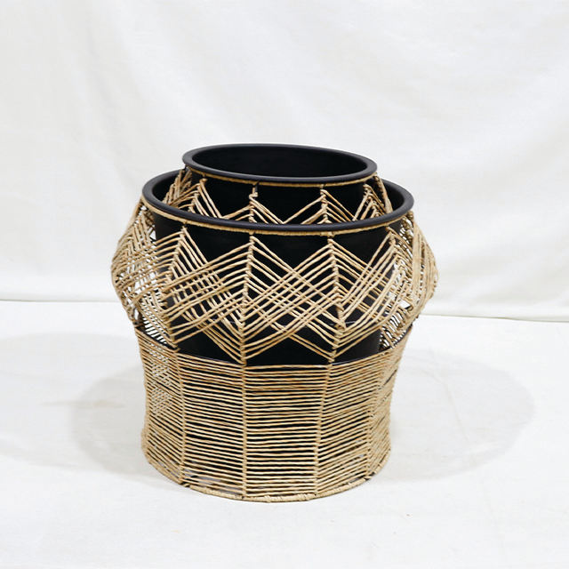 Juego de Macetas de Mimbre de Plástico con Diseño Innovador, Duraderas e Impermeables, para Jardín y Flores